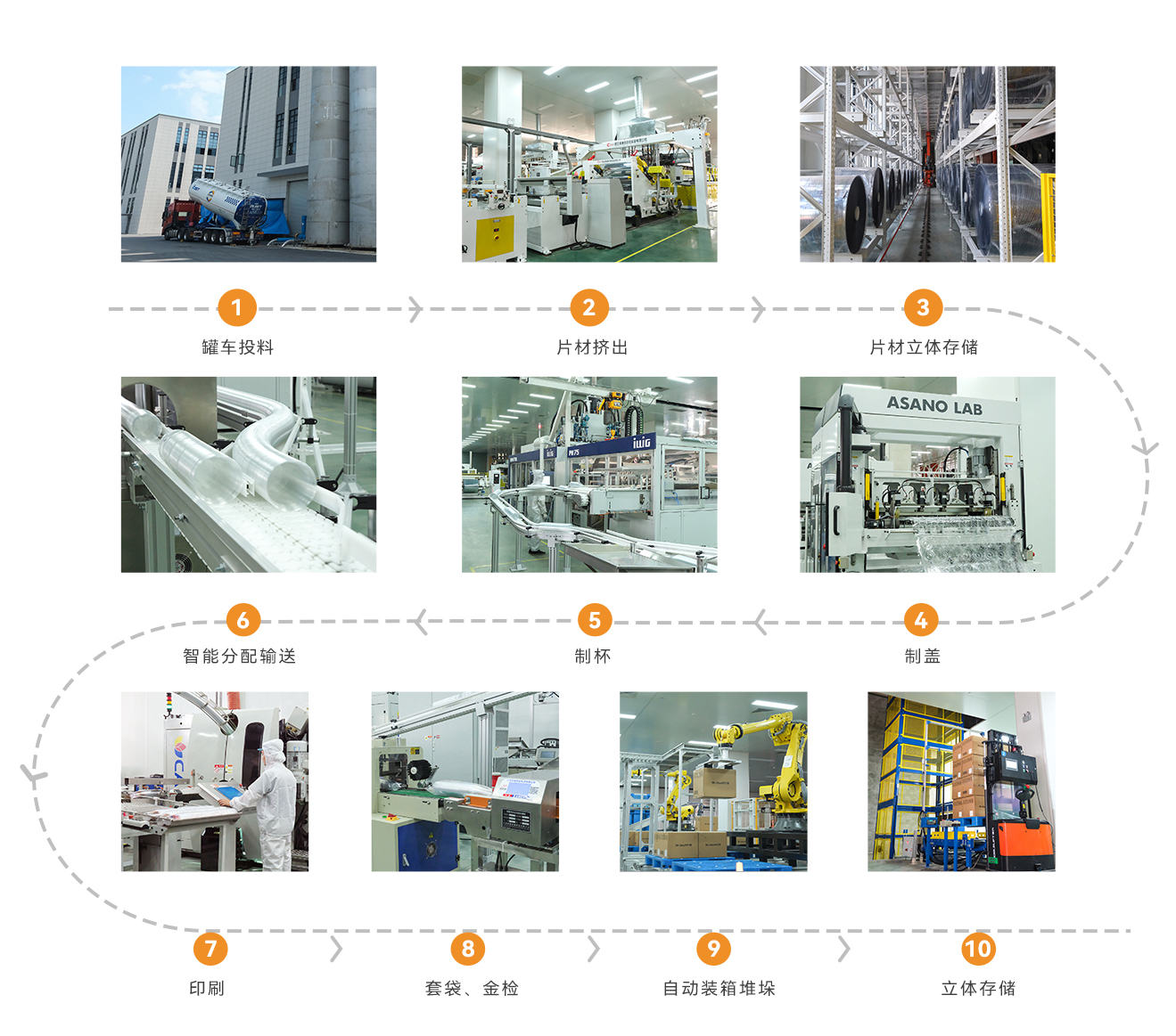 拥有15条德国伊利格杯子生产线;10条德国凯孚尔&日本浅野杯盖生产线;单线产能3.3亿只,可为大型连锁品牌设立专用产线或独立车间